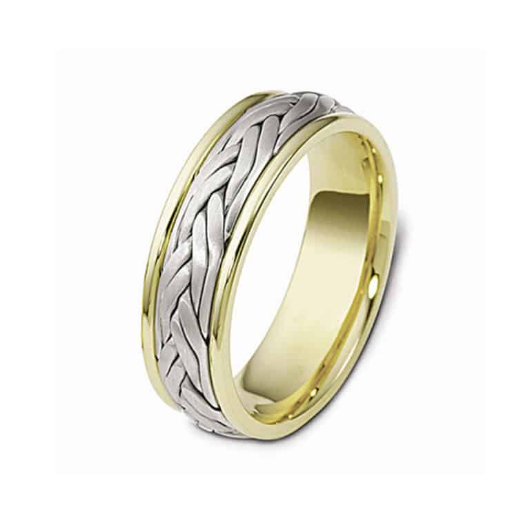 - 14ct White and Yellow Gold Plait Gents Wedding Ring